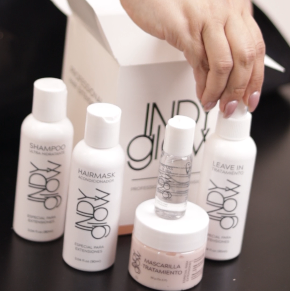 Lleva el cuidado de tus extensiones a donde vayas. El Kit de Viaje Indy Glow incluye todo lo necesario para mantener tu cabello y extensiones impecables en cualquier lugar, con presentaciones diseñadas especialmente para viajar.
