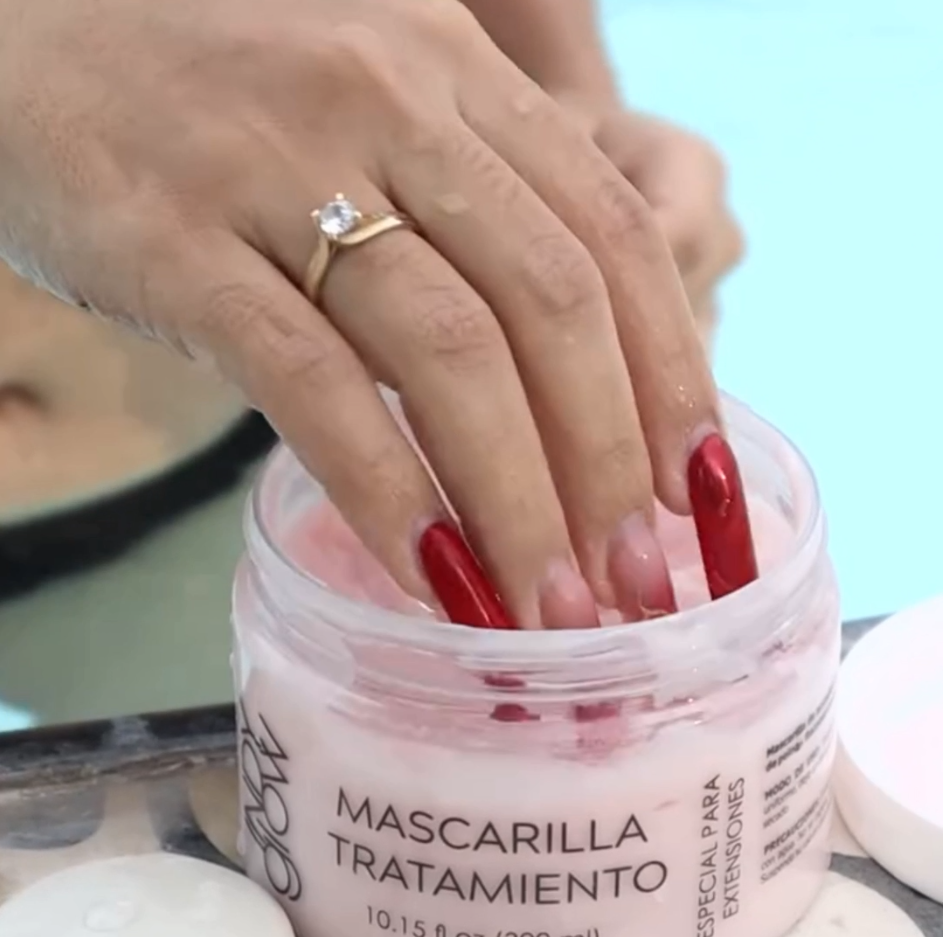 ENRIQUECIDO CON: Alto contenido de aminoácidos vegetales, sea butter, acidos grasos, una fina y delicada mezcla de micro sedas que en conjunto trabajan de manera profunda e intensiva para mejorar la condición del cabello de las extensiones (o natural)